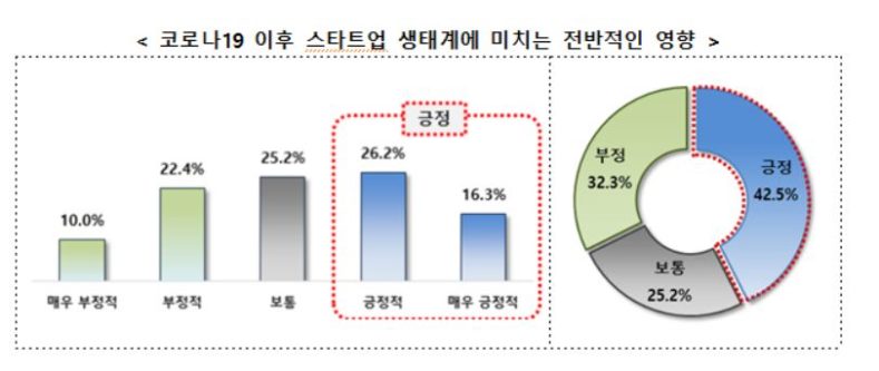스타트업의 정부에 대한 건의사항은 유망 산업분야(비대면, 바이오 등)에 대한 특화지원 등 정부지원의 확대가 필요하다는 의견이 60.9%로 가장 많았으며 코로나19 극복을 위해 기존 정부 지원사업(R&D, 멘토링, 규제완화 등)확대가 필요하다는 의견(36.1%)과 비대면 서비스에 대한 대국민 활용 확산(3.0%) 등도 있었다.