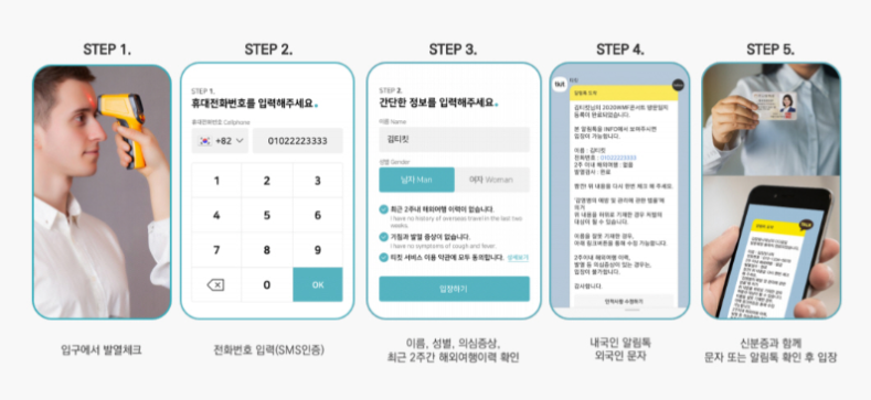 해당 서비스는 방문객이 공연장이나 행사장 등을 입장하기 전 모바일과 태블릿 패드에 이름, 성별, 의심 증상, 최근 2주간 해외여행이력, 기침 발열 증상 여부 등을 입력해 연락처 진위를 확인한다. 이후 입장을 돕는 고객 방문인증관리 솔루션이다. 생활방역 체계로 전환되면서 수기 방문 기록으로 인한 역학조사와 방문자 파악 문제를 해당 서비스로 해결한다는 취지다.