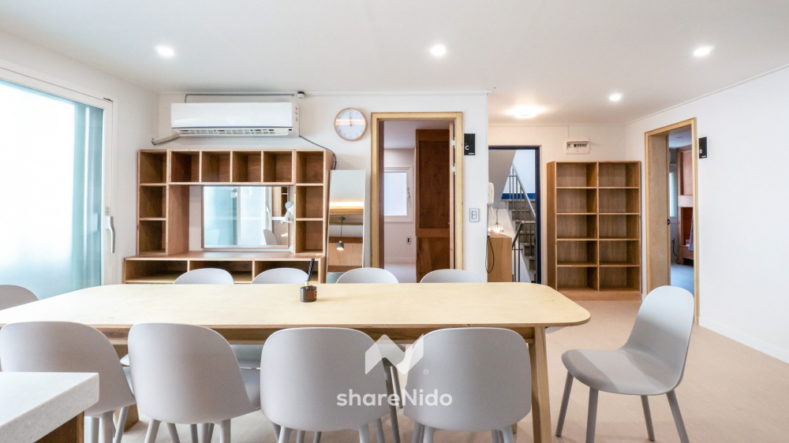 이번에 개소한 쉐어니도 강남 21도, 22도는 주택도시보증공사, 함께일하는재단과 협업한 것으로 신논현역과 강남역 도보 5분 거리에 위치한 다세대 주택을 모델링한 것. 1층 커뮤니티룸 모멘텀, 2층 여성 12인 셰어하우스, 3층 남성 10인 셰어하우스로 이뤄져 있다.