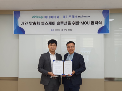 캡슐 티 브랜드 메디프레소가 헬스케어 데이터 분석 전문기업 메디에이지 개인 맞춤형 헬스케어 솔루션 구축을 위한 업무협약을 체결했다고 3일 밝혔다.