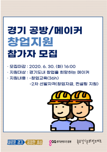 경기도와 경기콘텐츠진흥원이 경기 공방/메이커 창업지원 사업에 참여할 메이커를 30일까지 모집한다.