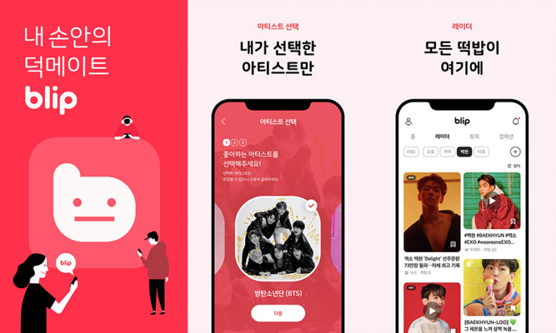 블립(blip.kr)은 케이팝 아티스트들의 유튜브 및 SNS 변화량을 탐지해 대시보드 형태로 보여주는 팬덤 데이터 관측기 ‘케이팝 레이더(K-Pop Radar)’를 오픈하고 ‘2019 케이팝 세계지도’를 발표했던 스페이스오디티가 내놓은 팬덤 앱이다. 블립은 딥 러닝을 기반으로 정확도 높은 자동 판별 기술을 사용해 팬들이 원하는 아티스트의 필수 콘텐츠만을 선별, 제공해 전 세계 케이팝 팬들의 어려움을 해결해주기 위해 기획됐다.