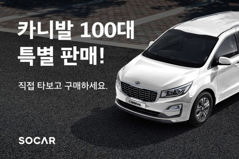 쏘카는 15일 오후 2시부터 9월 7일까지 약 3개월 동안 쏘카앱에서 중고 카니발 100대를 판매한다.