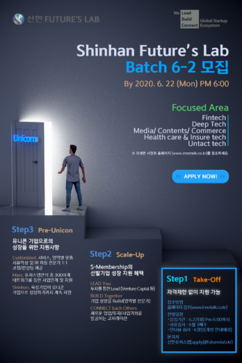 신한금융그룹 신한퓨처스랩이 하반기 배치 6-2를 22일까지 모집한다고 밝혔다.
