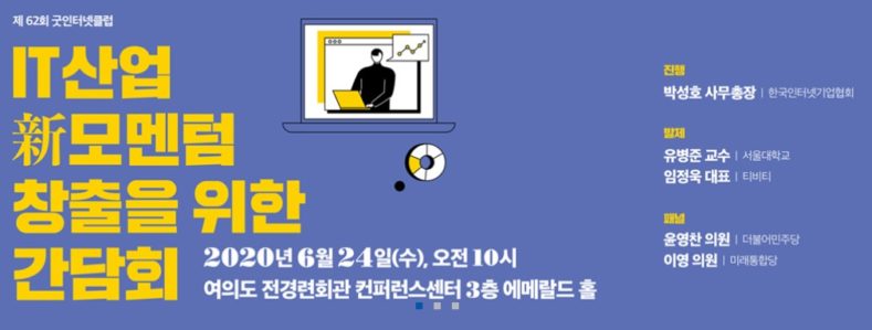 <IT산업 新모멘텀 창출을 위한 간담회>라는 타이틀로 진행되는 이번 굿인터넷클럽은 21대 국회 개원을 맞이하여 산업의 신 성장동력을 모색해보고자 마련됐다. 학계, 산업계 대표 전문가 및 IT 산업출신의 국회의원 2인이 패널로 참석하며 인터넷 기반 산업의 성장과 혁신 등 산업 전반에 대한 허심탄회 한 토론으로 이뤄질 예정이다.