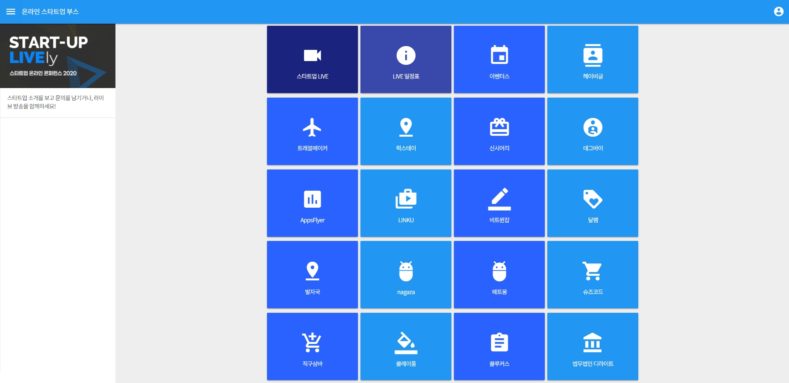 이번 온라인 콘퍼런스는 다양한 스타트업을 온라인에서 만날 수 있는 스타트업 부스를 운영하였다. 온라인 부스에는 20여 개 팀이 참여하였으며, 참가자들은 해당 기업의 소개를 보고 문의하기 버튼을 통해 궁금한 점을 곧바로 문의할 수 있었다. 또한, 부스 참가 기업 중 라이브 방송을 희망하는 기업에 한해 라이브 방송을 진행할 수 있게 하여 온라인으로 진행되는 행사임에도 참가자들에게 효과적으로 브랜드를 알릴 수 있는 기회를 제공했다.