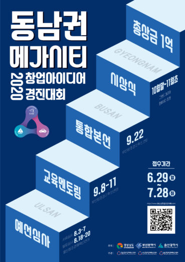 부산·울산·경남창조경제혁신센터가 지역 간 상생발전 및 창업생태계 붐 조성을 위한 ‘2020 동남권 메가시티 창업아이디어 경진대회’ 참가자를 7월 28일까지 모집한다.