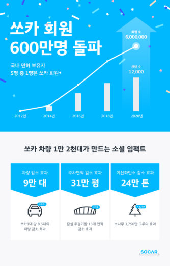 쏘카가 회원 600만명을 돌파했다고 2일 밝혔다.