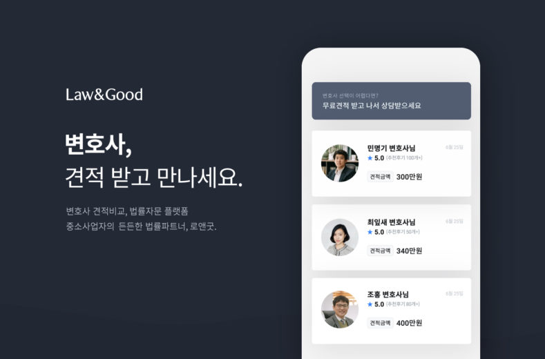 로앤굿 민명기 대표는 “법률수요는 비즈니스 영역에 가장 많음에도 불구하고, 중소사업자들은 분쟁의 규모가 작다는 이유로 전통적인 법률시장에서 외면받아온 것이 사실”이라며 “합리적인 가격으로 양질의 법률서비스를 받고자 하는 중소사업자들과, 광고보다는 실력으로 승부하고자 하는 변호사들의 니즈를 모두 충족하고 싶다”고 전했다.