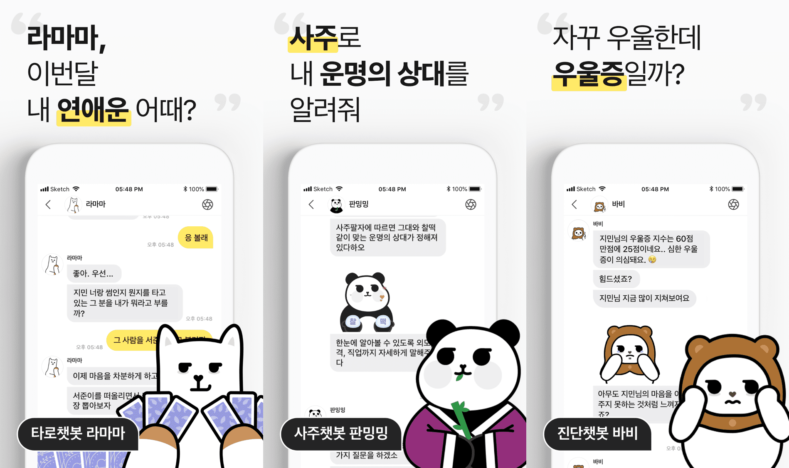 헬로우봇은 캐릭터 챗봇과 대화하며 콘텐츠를 즐길 수 있는 앱 서비스다. 지난달 말 기준 누적 앱 사용자가 300만 명을 돌파했다. 대표 챗봇은 타로점를 통해 연애 고민을 들어주는 타로챗봇 ‘라마마’, 성격을 분석하고 심리를 진단하는 진단챗봇 ‘바비’, 트렌드를 반영해 현대적인 사주를 제공하는 사주챗봇 ‘판밍밍’ 등이다. 헬로우봇 사용자 중 80% 이상은 MZ세대다.