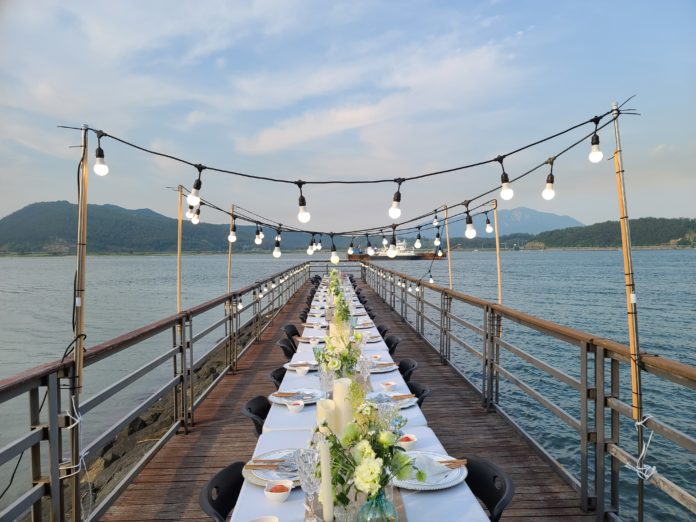 일렁이는 파도를 배경으로 남도 한 상이 차려졌다. 남도에 오면 한 번쯤 먹어봐야 한다는 먹거리를 눈으로 먼저 감상한다. 눈으로 보기 광경을 사진으로 남기는 사이 석양이 일렁인다. 자연과 식도락이 어우러지면서 낯선 공간에서의 경험이 극대화되는 순간이다.