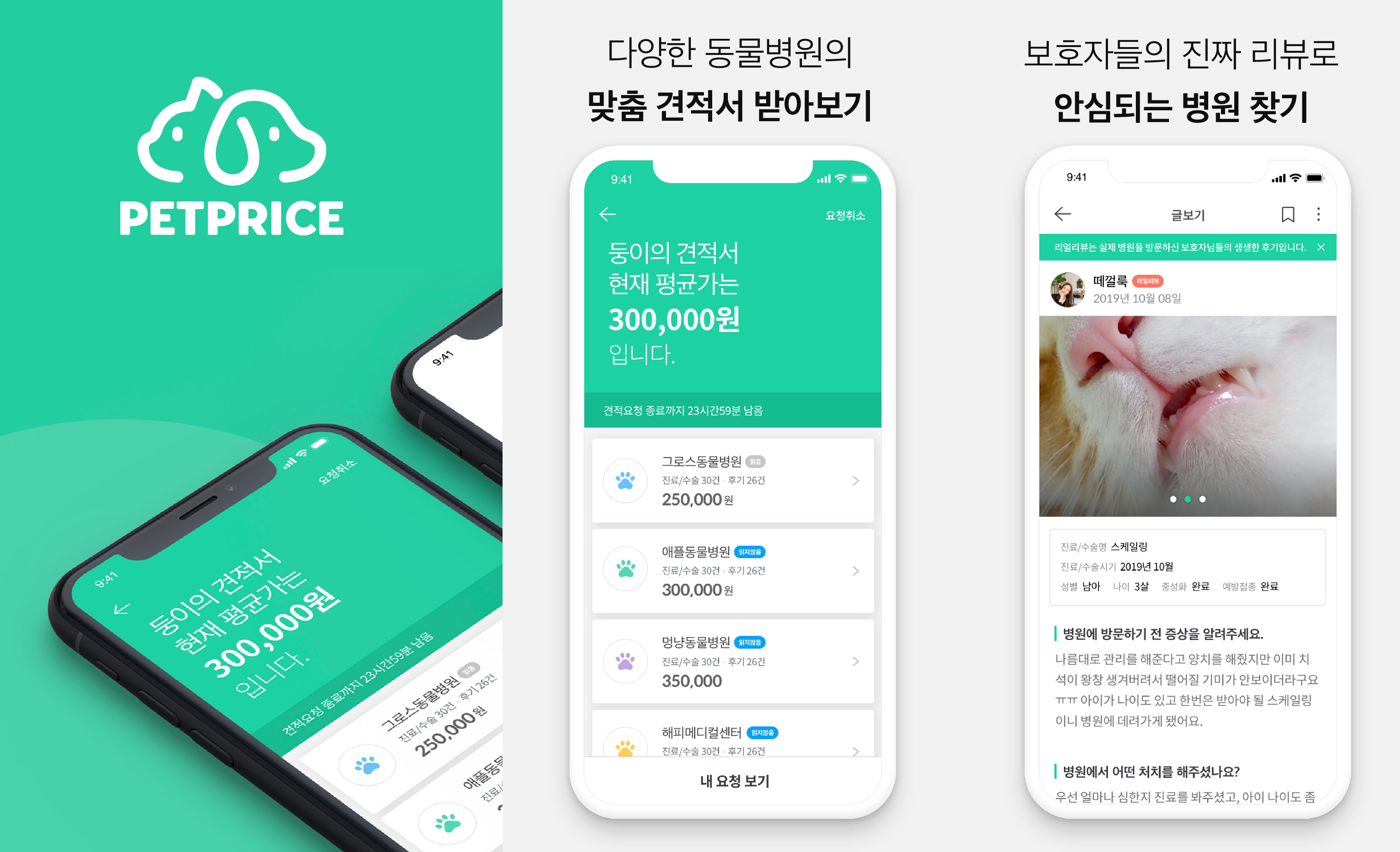 펫프라이스는 앱 서비스로 보호자가 반려동물의 성별, 몸무게, 병력 등의 정보를 포함하여 진료비에 대해 견적 요청을 하면, 지역 동물병원의 수의사 소견과 수술 및 진료의 절차, 그리고 진료비에 대한 견적을 받아볼 수 있다.