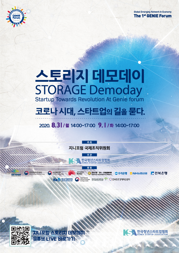 한국청년스타트업협회는 오는 31일부터 9월 1일까지 양일간 진행되는 ‘제1회 지니포럼 및 스토리지 데모데이(STORAGE* Demoday)’를 개최한다고 27일 밝혔다.