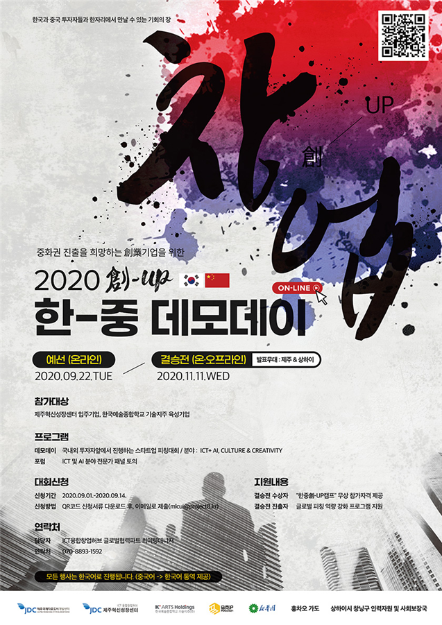 제주혁신성장센터 ICT융합창업허브는 ⌜2020 創-UP 한중데모데이⌟를 개최한다. 9월 1일부터 9월 14일까지 제주혁신성장센터 내에서 데모데이에 참가할 스타트업들을 모집한다.