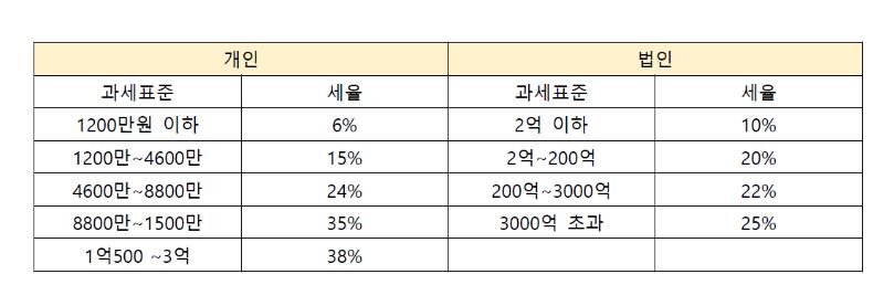 개인사업자는 “내가 곧 사업체다”라고 할 수 있습니다. 사업체로 번 돈을 사장 마음대로 쓸 수 있고, 사업으로 인한 책임도 사장이 전부 부담해야합니다. 시작 절차도 세무서나 국세청 홈페이지 홈텍스에서 ‘사업자등록’만 하면 됩니다. 참 간단하죠? 대신 영세업자가 아니라면 법인보다 소득세율이 높습니다. 그리고 경영 상태가 좋더라도 은행 등에게 대외신인도가 낮습니다. 정부 지원 사업 등을 통한 자금 조달도 쉽지 않죠.