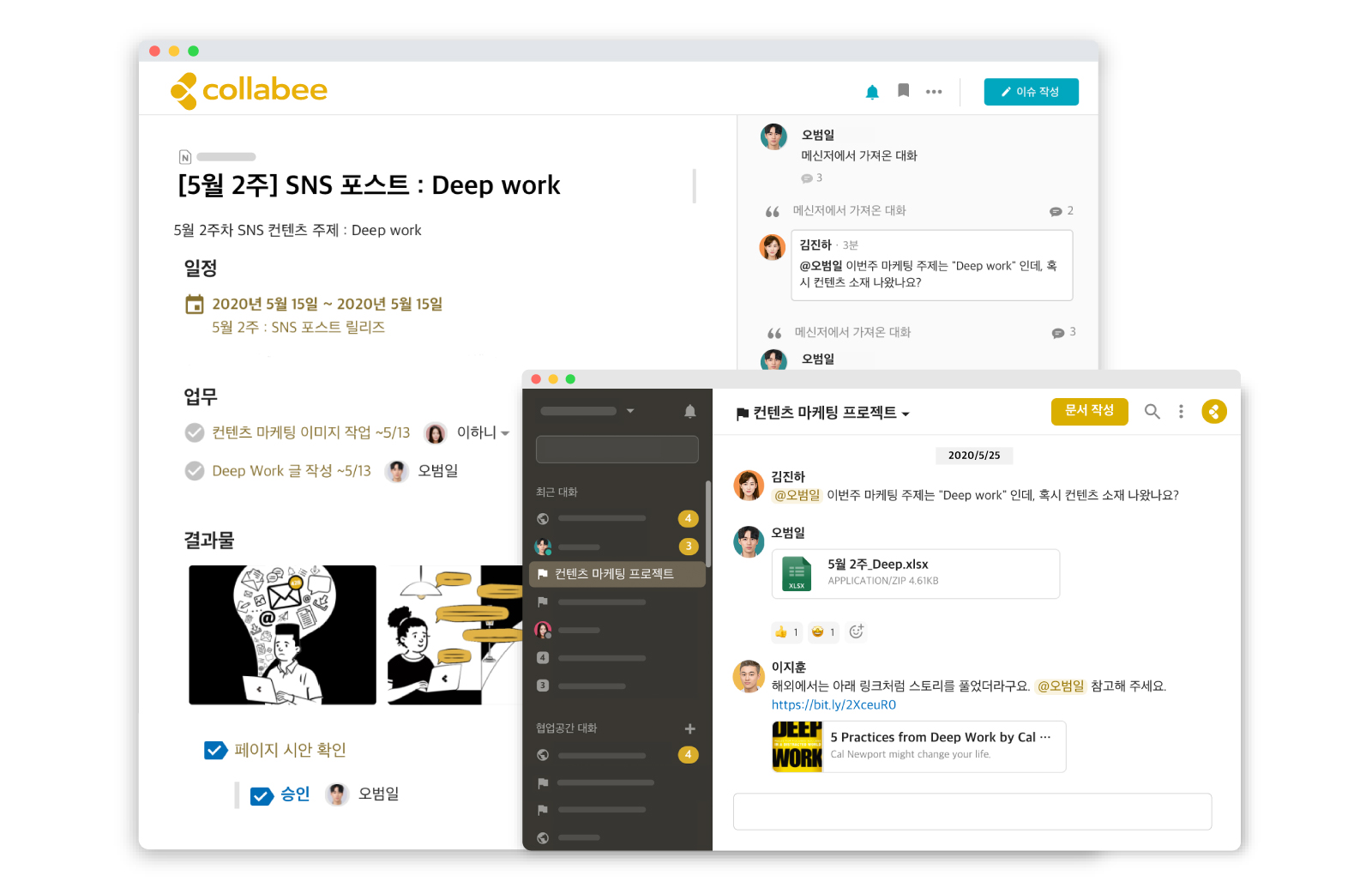 재택 근무는 단순히 일하는 공간의 변화 뿐만아니라 일하는 방식의 변화를 수반한다. 코로나19로 인해 많은 기업들이 재택근무에 돌입하면서 사내 메신저를 협업툴로 선택했다. 메신저는 대화를 작성하고 보내기만 되는 등 학습비용이 가장 낮은 서비스라는 것이 그 주된 이유였다. 하지만 이후 실제 재택근무를 진행하고 있는 기업들은 공통적으로 메신저만으로는 협업에 한계가 있다고 토로하고있다. 메신저로 상사가 언제 호출할 줄 모르는 실무진들은 항상 긴장 상태로 메신저 앞에 대기한다. 줌과 같은 화상회의 솔루션으로 화상회의 빈도도 늘어나다보니 해외에서는 줌 피로(Zoom fatigue)라는 신조어도 생겨났다. 생산성 분야의 베스트셀러 작가로 유명한 미국의 칼 뉴포트(Carl Newport) 교수는 그의 저서 ‘딥워크(Deep Work)’에서 모든 업무를 메신저로 해결하는 것은 매우 비효율적이고 생산성을 떨어뜨린다고 지적하고 있다. 이에 올 8월 다시 코로나19가 확산되면서 재택근무에 재돌입한 기업들은 기존에 체험한 메신저의 한계를 극복할 수 있는 대안으로 원페이지 협업툴에 주목하고 있다.
