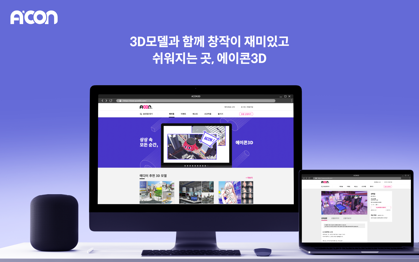 에이콘3D는 카페 인테리어, 건축물 외관 등 다양한 산업의 3D디자인·모델들을 웹툰·코믹스, 일러스트, 3D게임, 애니메이션, 방송 등 다양한 분야의 창작에 활용될 수 있도록 하여, 콘텐츠 창작자들이 쉽고 완성도 있게 창작 활동을 할 수 있도록 돕는다. 기존 등록된 작품 외에도 창작자가 원하는 3D디자인을 직접 의뢰하고 받을 수도 있다.