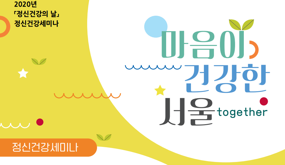 서울시정신건강복지사업지원단이 진행하는 마음이 건강한 서울, together이 오는 10월 6일 화요일 13시 30분에 진행된다. 이번 행사는 2020년 「정신건강의 날」 정신건강 세미나로 생활 속 거리는 멀리, 마음 속 거리는 가까이를 주제로 한다.
