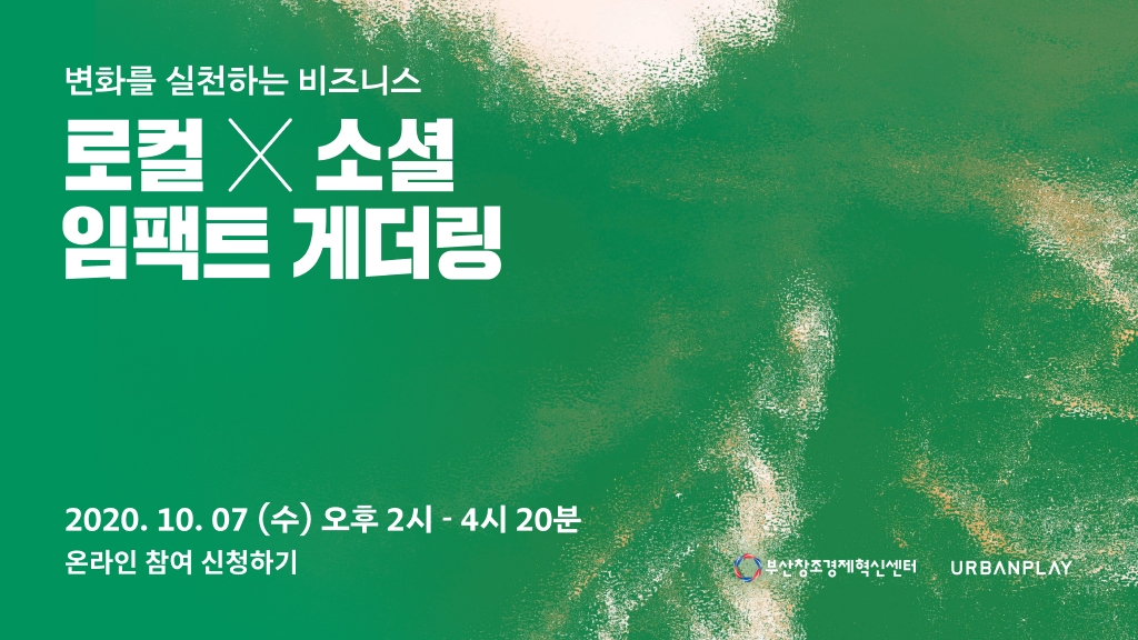 부산창조경제혁신센터와 어반플레이가 주최하는 로컬 X 소셜 임팩트 게더링이 오는 10월 7일 수요일 14시에 진행된다. 온라인 웨비나로 진행되는 이번 행사는 창의적인 아이디어로 지역과 사회에 변화를 만들어 내는 창업가를 위한 네트워크 컨퍼런스다.