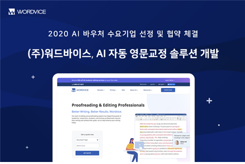 영문교정 및 번역 서비스 플랫폼 기업 워드바이스가 정보통신산업진흥원이 주관하는 ‘2020년 하반기 AI 바우처 지원사업’ 수요기업으로 최종 선정되었다고 8일 밝혔다.