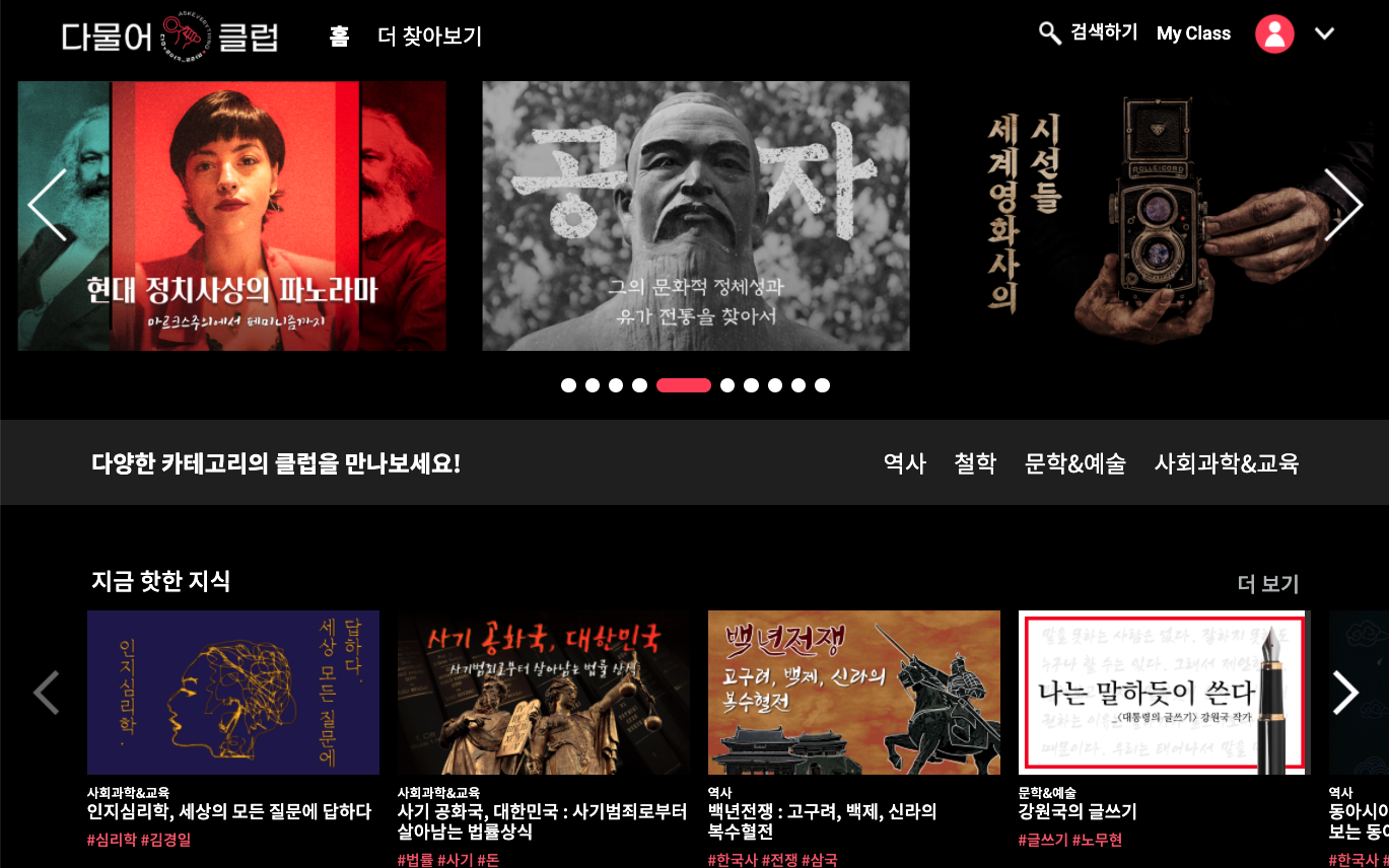 다물어클럽은 쉽게 접근할 수 없었던 철학, 문학, 역사, 심리학 등의 인문학 분야와 미술, 영화, 클래식 등의 예술 분야를 쉽고 저렴하게 학습할 수 있는 온라인 영상 교육 플랫폼이다. <대통령의 글쓰기>의 저자인 강원국 작가를 비롯해 김경일 아주대 심리학과 교수, 김홍신 작가 겸 홍상문화재단 이사장, 박영택 경기대 예술학과 교수, 송현민 <월간객석> 편집장, 베스트셀러 <몰입>의 저자 황농문 서울대 재료공학부 교수 등 50명 이상의 전문가들이 연사로 참여하였다.