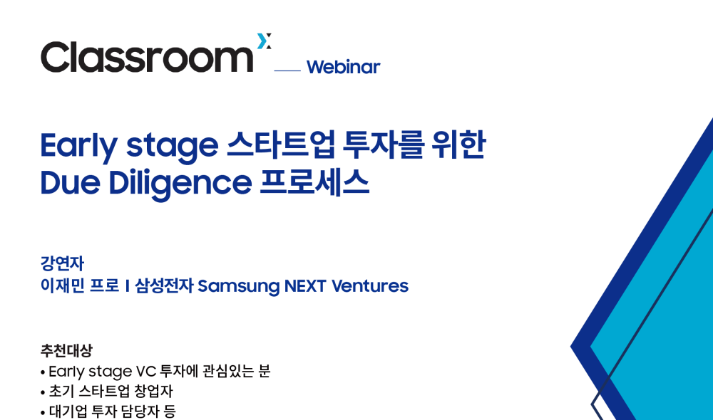 ◇[10월 21일 수요일] = [ClassroomX] Early stage 스타트업 투자를 위한 Due Diligence 프로세스