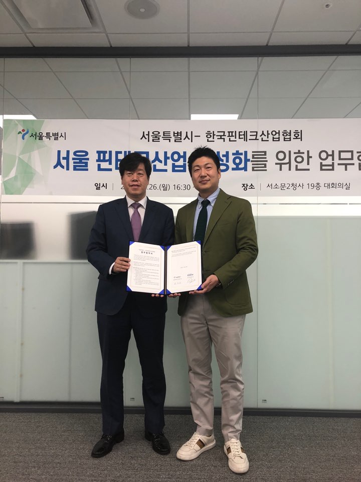 한국핀테크산업협회가 26일 서울시와 핀테크 스타트업의 성장을 지원하고 핀테크 산업을 육성하는 내용의 업무협약을 체결했다고 밝혔다.