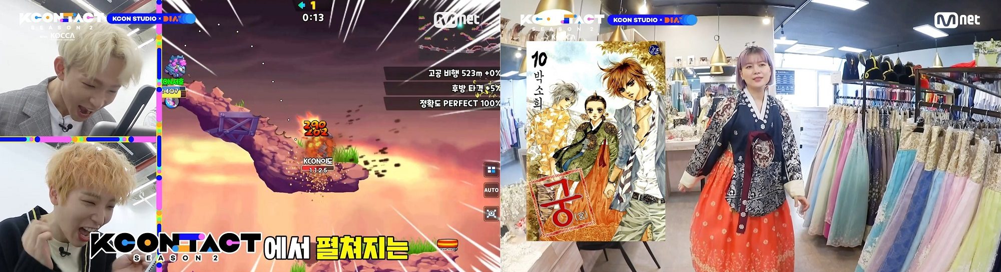 이번 ‘케이콘 스튜디오 바이 다이아티비’에서는 ▲뷰티 전문 유튜버 씬님과 아이돌 그룹 온앤오프의 만화 <밤을 걷는 선비> 커버 메이크업 ▲판소리로 ‘팬텀싱어 시즌3’를 정복한 국악인 고영열의 애니메이션 <레드슈즈> 국악 버전 정복기 ▲패션 쌍둥이 Q2HAN 자매들이 선보이는 만화 <궁>의 아름다운 한복 룩북 등이 펼쳐졌으며, 전 세계 한류 팬들에게 K-콘텐츠의 무한 매력을 유감없이 드러냈다.