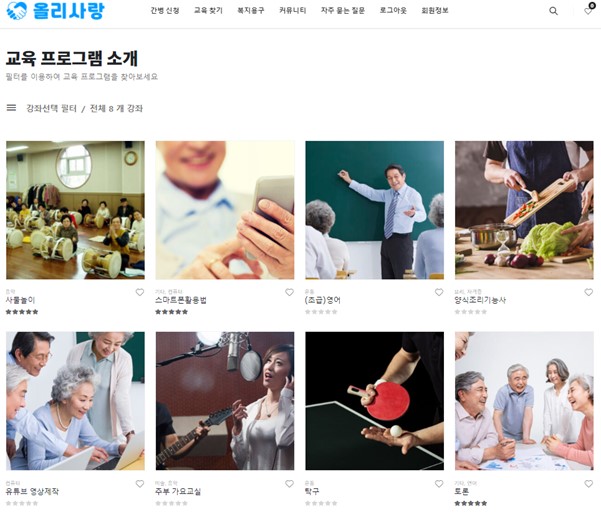 올리사랑은 간병 뿐만 아니라 시니어 교육과 복지 용품 비교 서비스를 제공하고 있다. 시니어에게 필요한 정보를 경험과 인프라가 다양한 업체와 파트너십을 통해 상생하는 방향으로 서비스를 확장하고 있다. 또한 온라인에 익숙한 시니어를 대상으로 정보 커뮤니티를 조성 중이다.