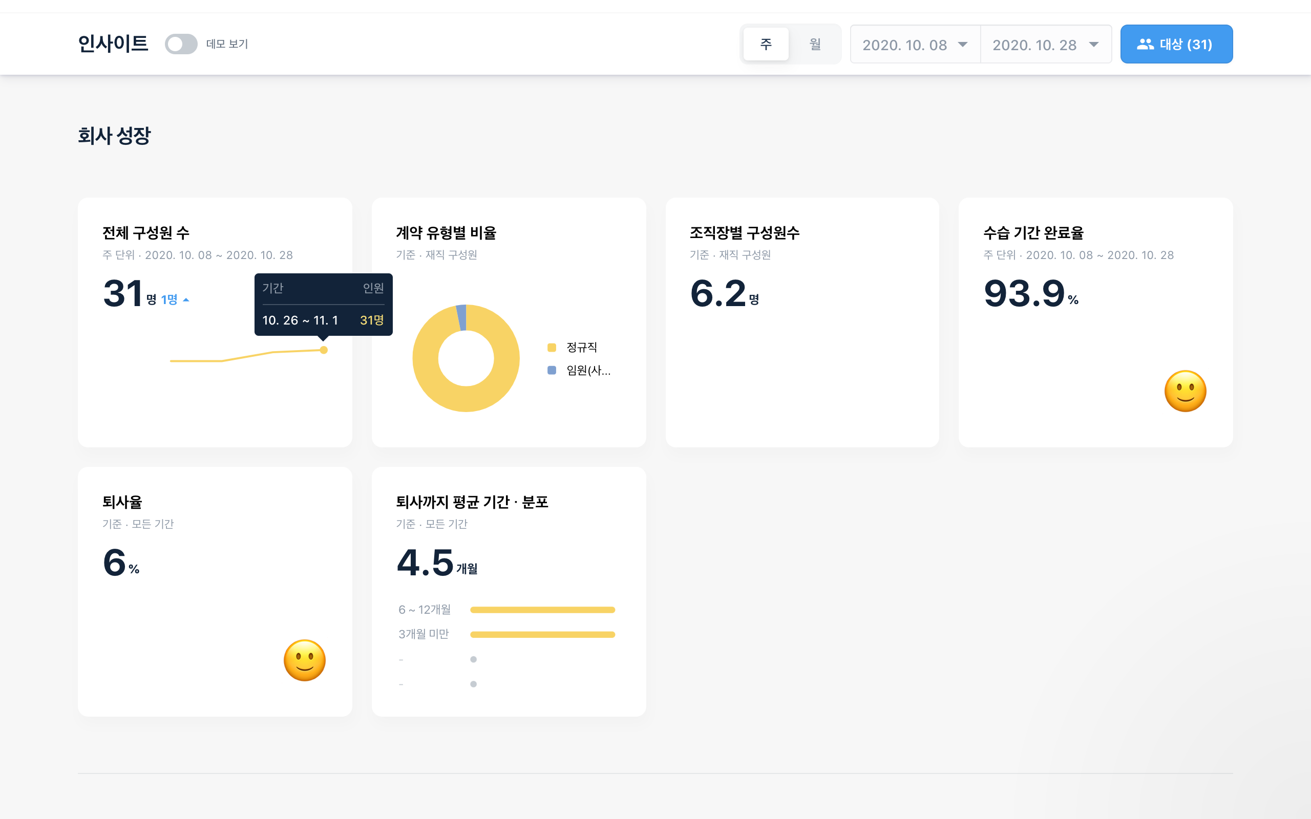또한, 회사의 성장, 다양성, 보상, 근무시간·휴가 등 각종 인사 데이터를 시각화한 대시보드로 제공하는 ‘인사이트’ 기능을 최근 출시해 데이터 기반 인사관리의 진입장벽을 낮췄다는 평가를 받고 있다.