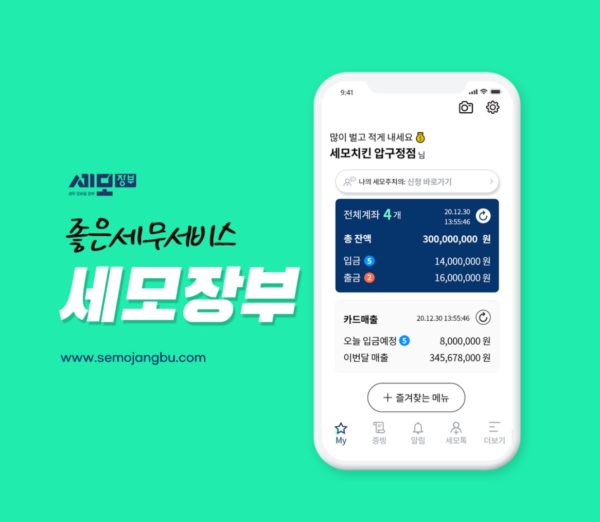 주요 서비스로는 한눈에 손쉽게 관리되는 ‘경영정보(모든 은행 계좌통합관리, 카드 매출 조회, 카드 매입 관리 등) 및 증빙 자동수집’과 세무 신고 및 납부 알림 등 사장님이 필요한 정보를 자동으로 알려주는 ‘스마트비서’, 고객의 경영과 절세를 지원하는 전국 400명의 세모주치의 ‘무료 절세 컨설팅’ 등이 있다.