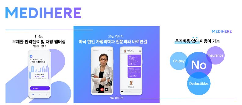 한편 메디히어는 뉴욕 미국 오피스와 서울 한국 오피스에서 원격진료 서비스를 제공하는 디지털헬스케어 회사다.