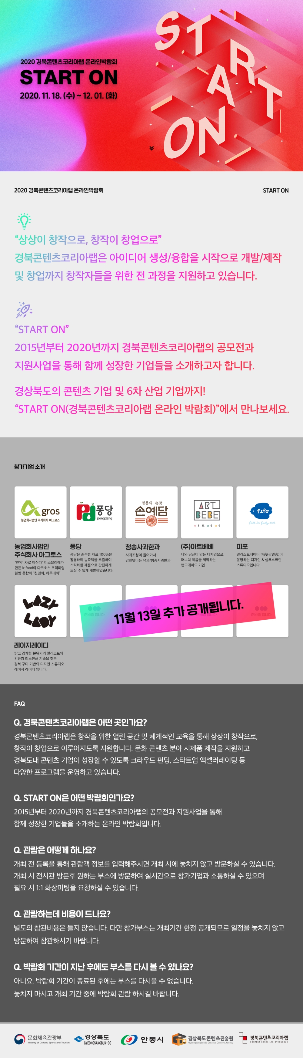 ◇[11월 18일 수요일~12월 1일 화요일] 2020 경북콘텐츠코리아랩 온라인박람회 ‘START ON’