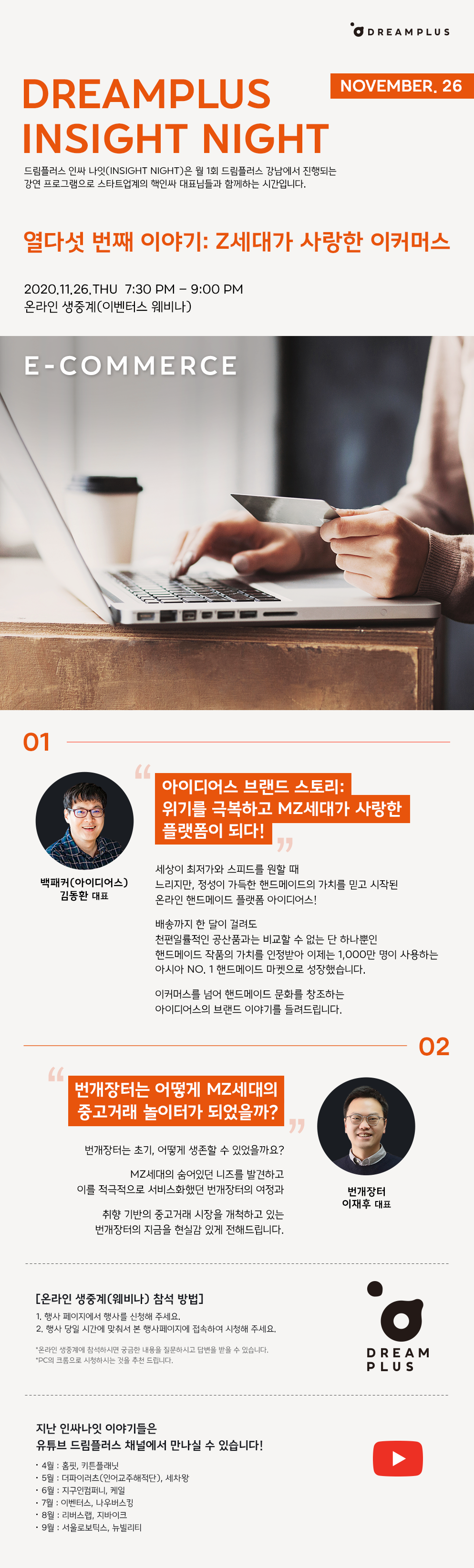 ◇[11월 26일 목요일] 한화 드림플러스 인싸나잇(Insight Night) ‘Z세대가 사랑한 이커머스편(아이디어스, 번개장터)’
