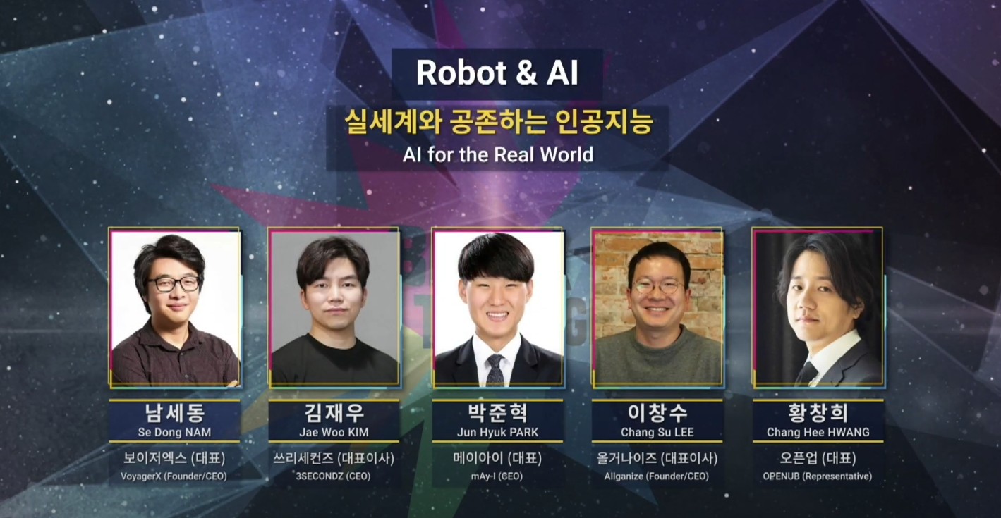 20일 오후 다섯 명의 스타트업 대표가 한자리에 모였다. 남세동 VoyagerX 대표의 진행으로 ‘실세계와 공존하는 인공지능‘ 주제 아래 실제로 이 인공지능을 열심히 만들고 있는 스타트업 대표 네 사람을 만났다. 김재우 3secondz 대표이사, 박준혁 메이아이 대표, 이창수 Allganize 대표이사, 황창희 OpenUB 대표가 그들이었다.