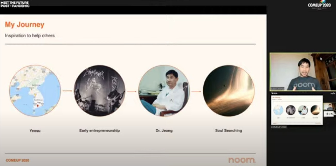The first keyword was Yeosu. He was born and raised in Yeosu. He was curious about the world around him as he grew up in a small city. Second, heavy metal music. He was a boy who loved music, and he began his first business at a young age as a heavy metal label business. He said he found out what a startup is and what entrepreneurial spirit is through his heavy metal business. The third keyword was father. Although his father was a doctor, Jung described that he passed away from cancer. Because of his father’s influence, Jung developed a will to start a business for health and medical care. Therefore, the curious boy in a small city started a health-related business based on the entrepreneurial spirit he gained through his music business. The business is now called Noom.
