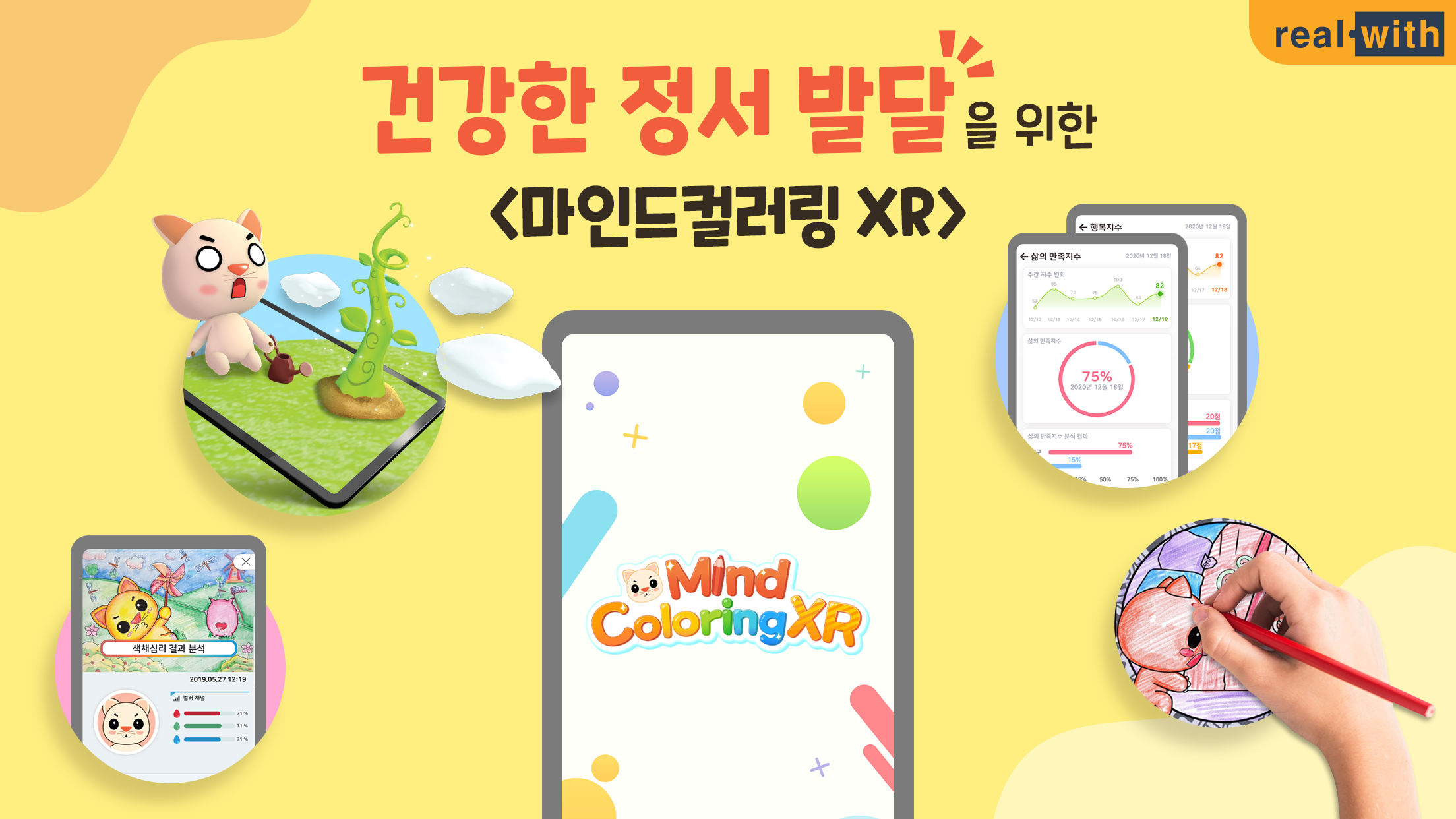 마인드컬러링XR App은 가족, 환경, 친구, 자아만족, 학교(유치원) 등 다양한 정보를 고려해 아동 및 어린이의 욕구. 심리, 자존감등을 파악하는 서비스를 제공한다. 이를 통해 사용자는 원격지에서 아이의 변화를 실시간으로 확인 할 수 있게 된다.