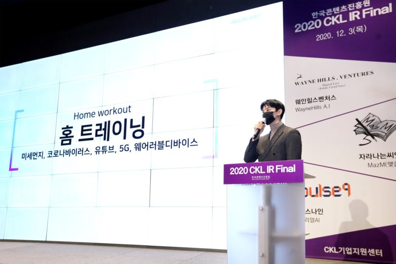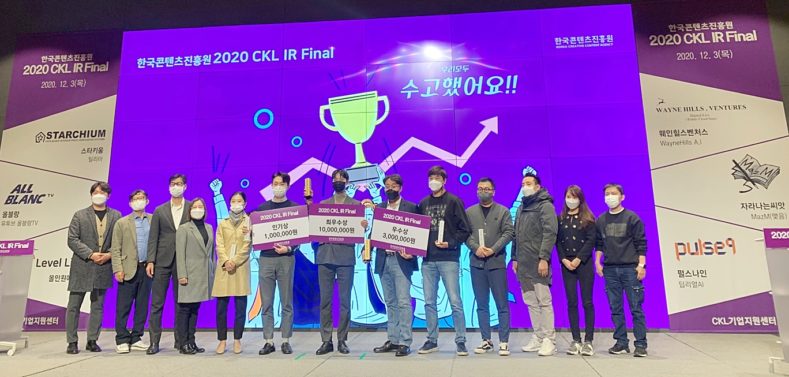 한국콘텐츠진흥원 CKL기업지원센터가 12월 3일 삼성동 슈피겐홀에서 ‘2020 CKL IR Final’ 행사를 가졌다고 밝혔다. 이번 행사는 코로나19 확산 방지를 위해 온라인으로 진행되었다.