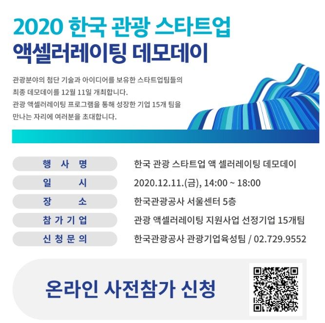 문화체육관광부와 한국관광공사가 주관하는 ‘2020 한국 관광 스타트업 액셀러레이팅 데모데이 Beyond.K’ 관광 분야 액셀러레이팅 프로그램의 마무리 자리가 11일 마련된다.