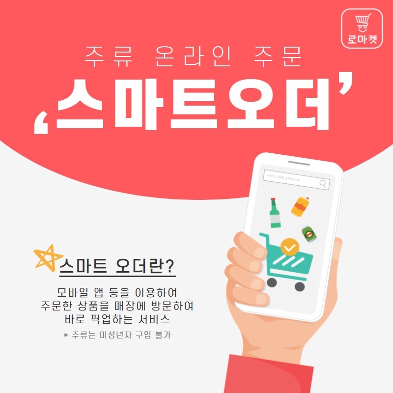 주류 스마트오더는 이용자가 로마켓 앱을 통해 원하는 주류를 골라 미리 결제한 뒤 매장에서 직접 픽업할 수 있도록 지원하는 서비스로 전국 로마켓 가맹점에서 이용 가능하다. 대상 품목은 현재 소주, 맥주, 막걸리에 한정하며, 내년 내 와인과 위스키까지 확장할 계획이다.