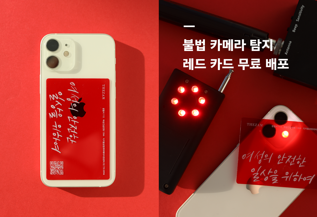 비전과 함께 그가 설명한 다양한 더잠의 활동 중 하나인 ‘레드카드’는 더잠에서 새로 시작하는 프로젝트다. “여성의 안전한 일상을 위하여”라는 모토와 함께 더잠 제품의 구매여부와 상관 없이 무료로 배포되는 레드카드는 불법 카메라를 감지하는 기능을 갖고 있었다.