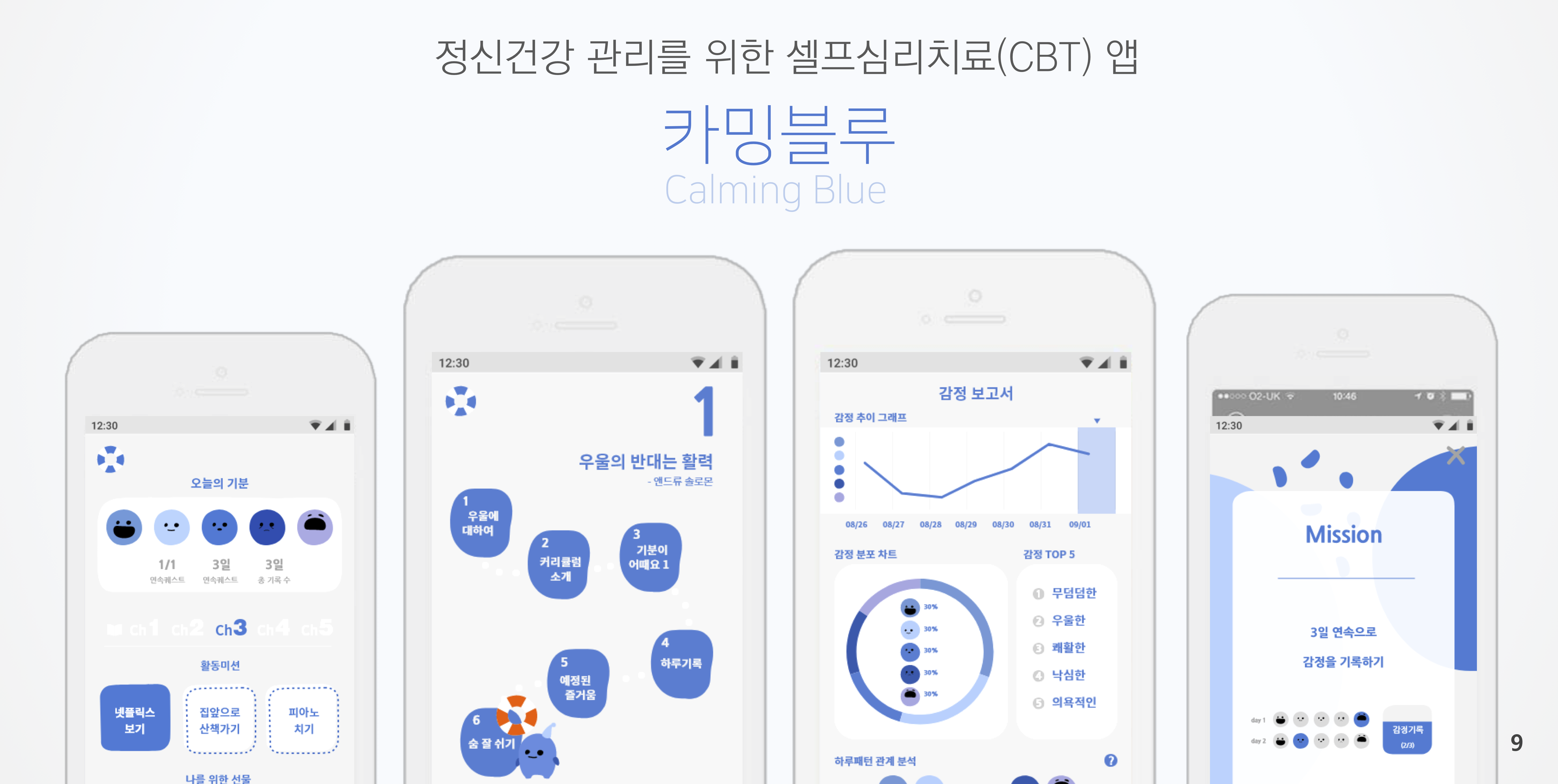 이런 목표를 위해 블루시그넘은 서울대학교 심리학과 안우영 교수 연구팀과의 공동 연구를 통해 경증 우울 관리를 위한 앱, ‘카밍 블루’의 베타 버전을 개발하였으며, 현재 파일럿 테스트를 진행하고 있다. 2021년 상반기에는 카밍 블루를 정식 출시하고, 더 나아가 불안, 불면, 번아웃, 중독 등에 대한 솔루션을 추가 개발할 계획이다. 더 장기적으로는 디지털 바이오마커에 기반하여 개인 맞춤형 정신 건강 서비스로 발돋움할 계획이다.