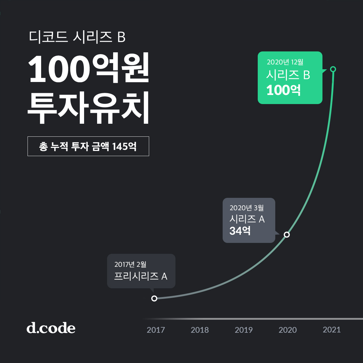 디코드는 올해 4월에 34억 규모의 시리즈 A 투자 유치 이후, 가파른 성장세를 바탕으로, 8개월만에 기업 가치를 3배 이상 인정받으며 100억 투자 유치에 성공했다.