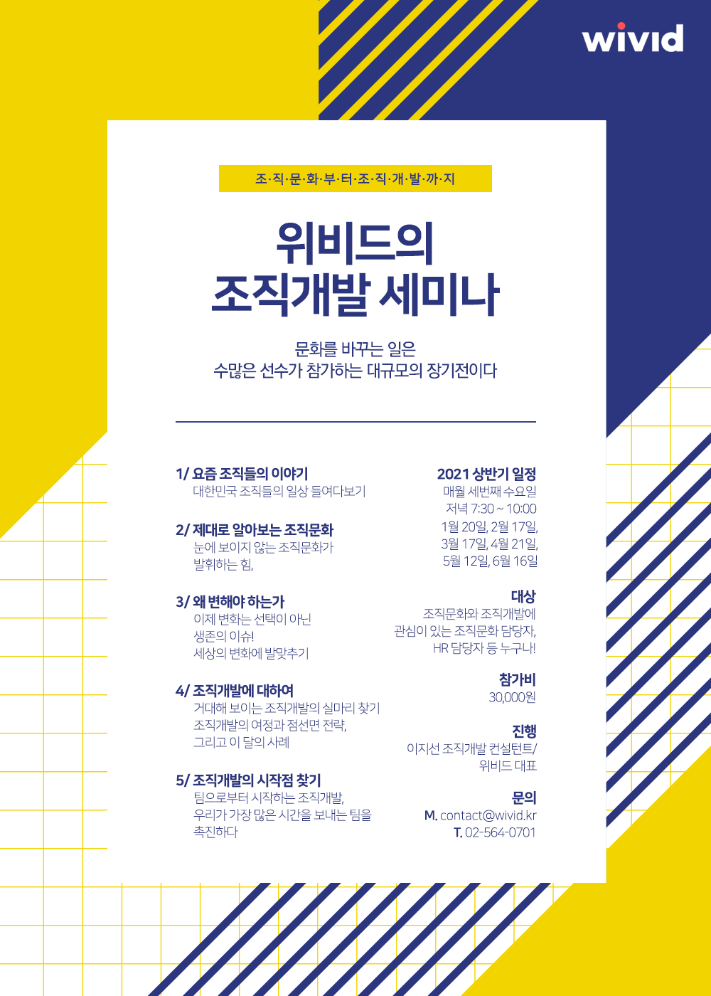 한편, 위비드는 조직에서 매일의 일이 의미 있도록 만드는 일, 조직 개발 컨설팅을 하고 있다. 일과 조직에 활력을 불어넣는 것을 목표로 한다. 웨비나에 대한 자세한 내용 확인과 참가 신청은 이곳에서 할 수 있다.