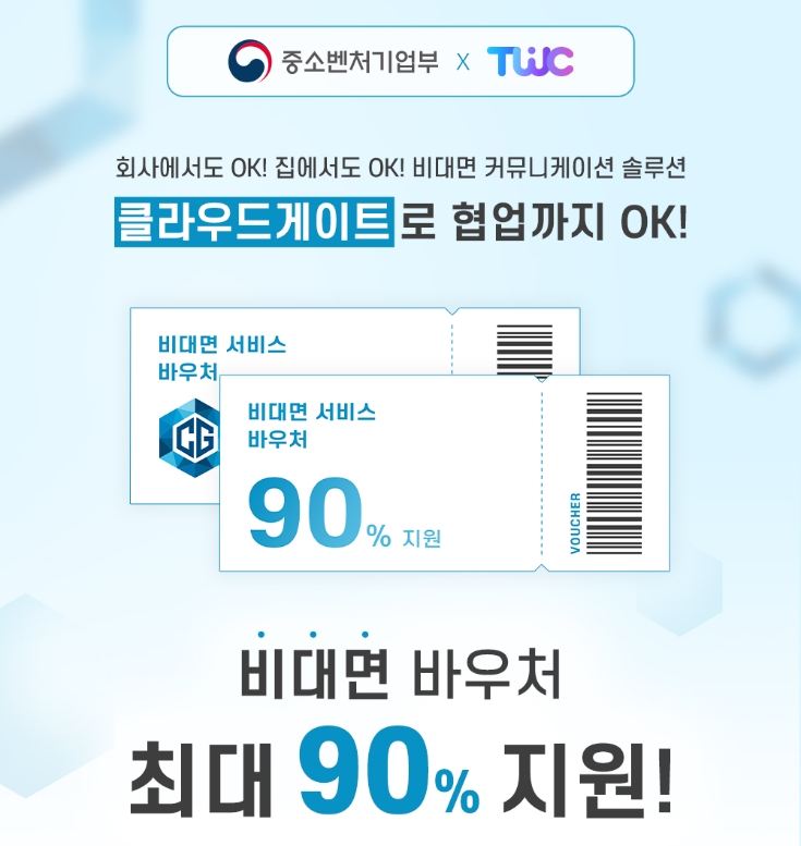 TWC(더화이트커뮤니케이션)는 중소벤처기업부 ‘K-비대면서비스바우처’ 사업 중 재택근무 부문 공급기업으로 선정되어 자체 개발한 비대면 통합 솔루션 ‘클라우드게이트’를 제공한다고 15일 밝혔다.