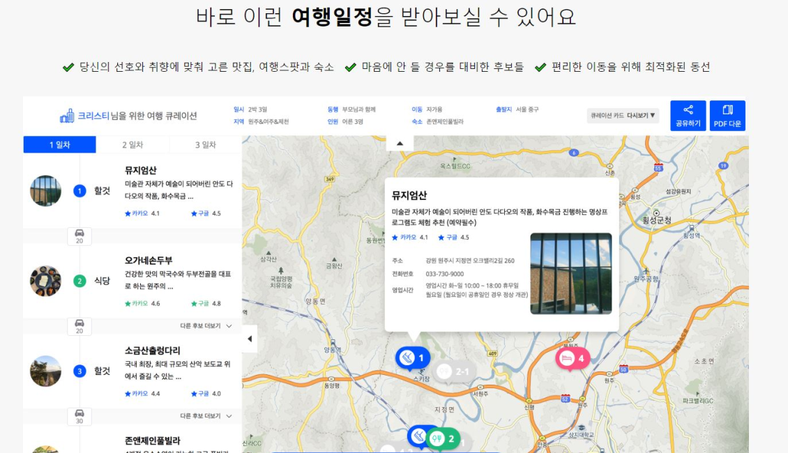 이에 대한 대안으로 AI를 활용한 국내여행 일정 큐레이션 서비스에 대한 아이디어들이 실험되고 있고, 완전하게 차별화되고 고급화된 Luxury 여행 상품을 만들어 내는 시도들이 늘어날 것으로 생각된다. 미래에는 private한 여행을 얼마나 많이 다양하고 개인에게 적합하게 만들어내느냐가 가장 중요한 성공요인으로 작용할 것이다.