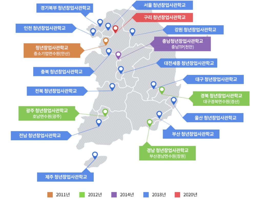 청년창업사관학교는 우수한 창업아이템과 혁신기술을 보유한 초기 창업자를 발굴해 성공적인 창업사업화 등 창업 전 단계를 패키지로 지원하는 사업으로2011년을 시작으로 현재까지 4,798명의 청년 창업가를 배출, 4조 7,822억원의 누적 매출성과, 13,718명의 신규 일자리를 창출한 바 있다.
