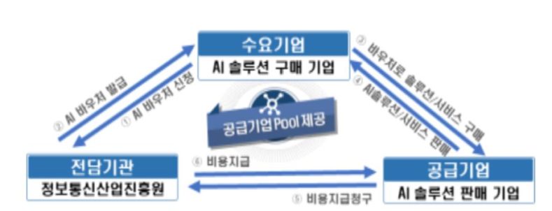 ‘AI 바우처’는 경쟁력 있는 중소벤처기업(공급기업)에게 자사의 인공지능 기술을 알리고 시장을 확대하는 기회를 제공하고, 인공지능 기술 적용이 필요한 기업(수요기업)이 고가의 인공지능 기술 활용을 용이하게 함으로써 산업 전 분야의 디지털 전환 촉진한다는 취지에서 지난 해 도입되었다.