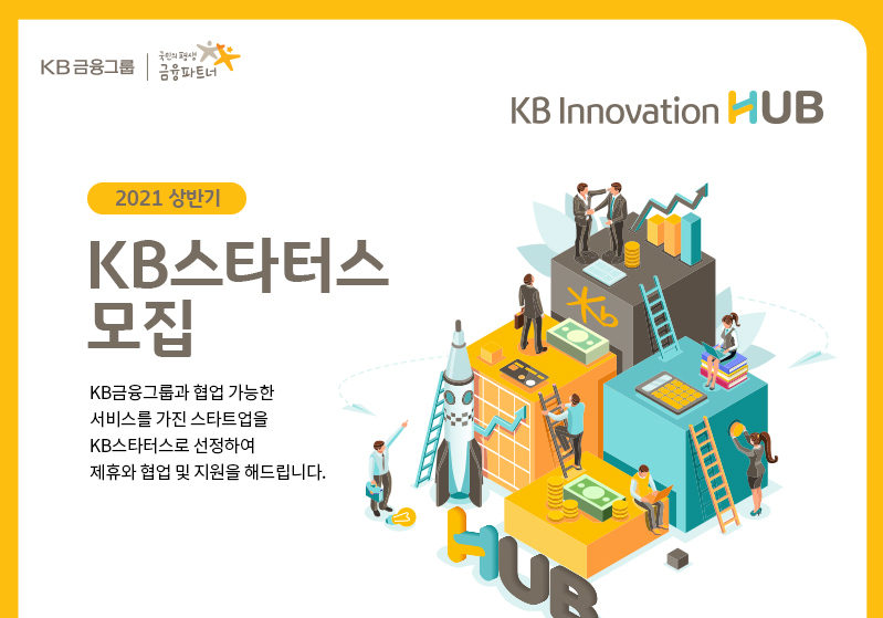KB금융그룹이 혁신적인 금융 서비스 확산에 함께 도전할 ‘KB스타터스’를 공개 모집한다. 창업 6년 이내 스타트업이라면 KB금융그룹의 핀테크랩인 KB이노베이션허브 웹사이트((kbinnovationhub.com)를 통해 2월 10일까지 온라인으로 신청하면 된다.