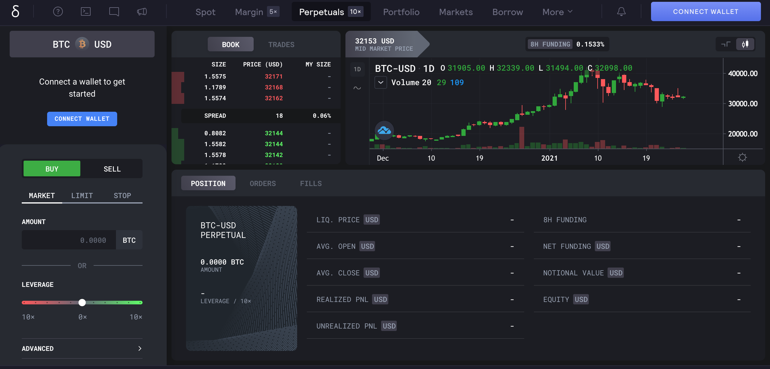 디와이디엑스는 미국 샌프란시스코에 본사를 둔 이더리움 스마트 컨트랙트 기반의 파생상품 탈중앙화 거래소로, 현재 이더리움 생태계에서 가장 많이 사용되고 있는 파생상품 탈중앙화 거래소이다. 2020년 기준 전체 거래량은 29억 달러(한화 약 3조원)으로 전년대비 40배 가량 증가하였으며 연동된 암호화폐 지갑 수 또한 4배 이상 증가하는 등 가파른 성장을 하고있다. 디와이디엑스의 사용자들은 비트코인, 이더리움, 스테이블코인(USDC, DAI)등 다양한 암호화폐에 대한 담보대출, 차입, 마진거래를 실행할 수 있다.